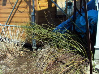 | 今日のクレマチス: 冬眠中のクレマチス。 つららの重みで折れそうですが、毎年 こんな過酷な冬を乗り切って、けなげに きれいに咲いてくれます。 |