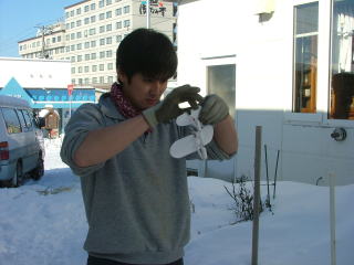 | 5月25日の知床窯 きのう、中標津の超ユニークな夫婦、S夫妻が遊びに来ました。 どのくらいユニークかは、2004年5月23日の「知床窯絵日記」をご覧下さい。 毎年今頃登場するので、知床窯にとって「S夫妻」というのは春の季語になっています。 |