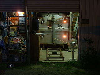 | 今日の窯: 益子への出発を控えて、男たちは連日焼き物 作りに励んでいます。 今日は窯焚きでした。 |