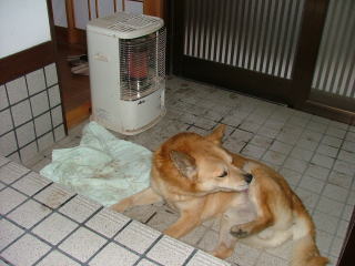 | 今日のナナ:月曜日から降り続いた雨が、 やっと今日やみました。 気温はまだ低いのですが、ナナも久々の 日向ぼっこを楽しんでいます。 「あ、キツネ色の犬だ!」とお客さん。 キツネ色・・・なるほどそういう表現も あったのですね。 |