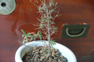 寒くなったので縁側に取り込んだフランネルフラワー。 枯葉を取り除こうとしたら、何かがしっかりくっついています。 どうやらカマキリの卵のよう。このままこの枝で越冬されると、 来春、孵化したカマキリの赤ちゃんが室内にワラワラという 状況になるので、枝ごと切り取って、外に出すことにします。 |