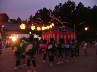 今日は星の宮地区の子ども盆踊り大会。 やぐらの上の子どもたちのお囃子に合わせて にぎやかに踊ります。 |
