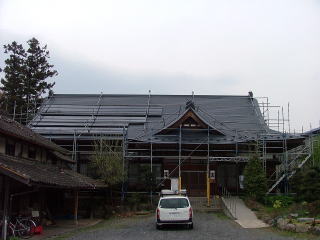| 地震で屋根のかわらが落ちた益子町内の あるお宅。大きなお屋敷で屋根もきれいな かわらぶきでした。 かわら屋根の大好きな私は、なんとかまた かわらで作り直して欲しいと願ったのですが・・ |